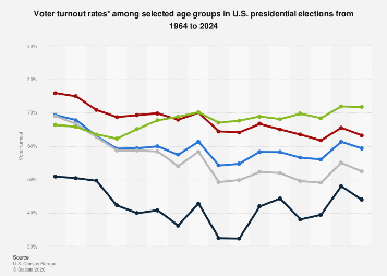 The subsequent rise in turnout since the late 1990s, particularly evident in elections like 2008 and 2020, has seen increased engagement from various age groups, but the age gradient has largely remained intact. The 2008 election, energized by a historic presidential campaign, saw a notable uptick in participation among younger voters, with the 18-24 group reaching 44.3%. This suggests that targeted mobilization efforts and compelling candidates can indeed drive engagement among historically less-participatory demographics. The 2020 election, influenced by the COVID-19 pandemic and a highly polarized political climate, also saw a significant increase in overall turnout, with the 18-24 group reaching 48%.
